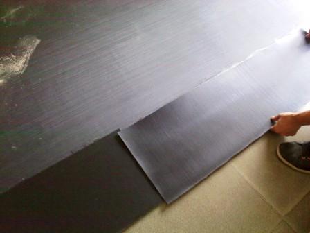 3.在石膏板上粘貼隔音阻尼氈,注意結(jié)縫處要對(duì)接超過(guò)5CM,確保沒(méi)有空隙。