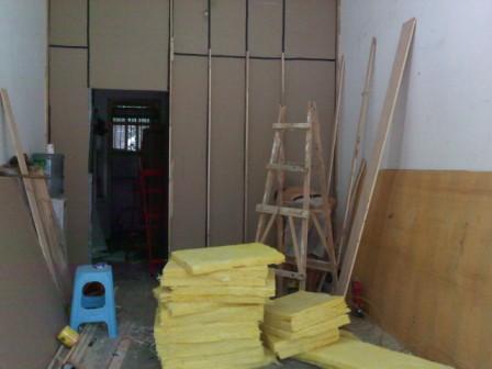 根據(jù)實(shí)際情況,可以做兩層隔音,即在隔好的墻體上,再打龍骨,填棉,表層用石膏板或者